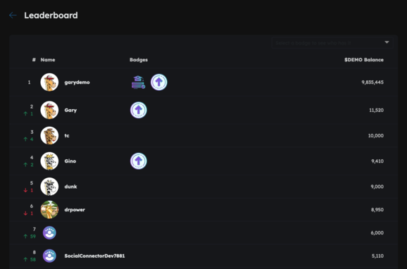 Let your users show off their ranking with a live leaderboard to showcase their rewards.